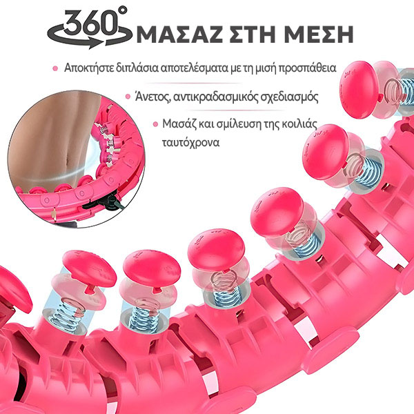 Με τμήματα μαγνητικής σύνδεσης και κεφαλές μασάζ 360°, το χούλα χουπ παραμένει με ασφάλεια στη θέση του, καθιστώντας το ιδανικό εργαλείο γυμναστικής ακόμα και για αρχάριους.